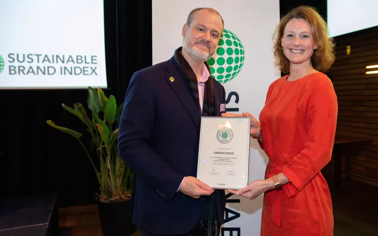 In Amsterdam zijn de Sustainable Brand Index Awards uitgereikt. Voor het derde jaar op rij staan we in de top drie van meest duurzame merken van Nederland. Greenchoice neemt de tweede plaats in, tussen Tony’s Chocolonely (1) en Zonnatura (3). Binnen de energiesector worden we door Nederlandse consumenten gezien als het meest duurzame energiemerk. Dat blijkt uit onderzoek van de Sustainable Brand Index onder Nederlandse consumenten en hun perceptie op duurzaamheid, branding en communicatie van bekende Nederlandse bedrijven.