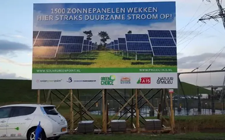 Zonnestroom opwekken zónder panelen op je dak wordt steeds makkelijker. Deze week startte de inschrijving voor een nieuw zonnepark langs de A15 bij Barendrecht. Daar komen 1500 zonnepanelen op een braakliggend stuk grond naast een bedrijventerrein te liggen. Het park levert straks genoeg stroom voor circa 80 huishoudens en is een project van Solar Green Point, Natuur & Milieu en Greenchoice. Solar Green Point is oprichter van de coöperatie waar de buurtbewoners zich bij kunnen aansluiten en zorgt voor de bouw van het park. Greenchoice verrekent de zelf opgewekte energie en het voordeel op de energiebelasting met de leden van de coöperatie.